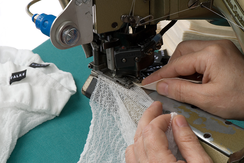 | Die Falke KG steht für Qualität, Innovation und zeitlose Modernität. Diese Reportage enstand als Hochschulprojekt. Unter der Leitung von Professor Martin Kreyssig wurde der Arbeitsablauf in der Manufaktur dokumentiert und so die Entstehung der Socken von der ersten Masche bis zum fertig konfektionierten Produkt fotografisch begleitet. |