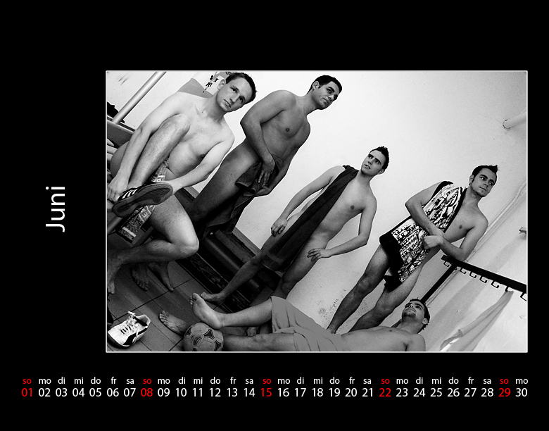 | Die Hochschulfußballer haben aus der Not eine Tugend gemacht. Um Gelder für das kommende Semester zu sammeln, haben sie bereits zum zweiten Mal ihre Hüllen fallen lassen. Zusammen mit der Mannschaft entwickelte ich ein Konzept. Mit einem Mix aus Studio und On-Location Fotos soll der Kalender vor allem die Natürlichkeit der Fußballer wiederspiegeln. |