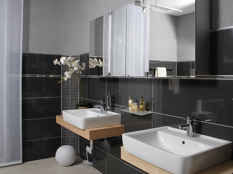 In ihren Räumen zeigt die Firma eine große Kollektion von Musterbädern. Hier kann sich der Kunde in Ruhe umschauen.